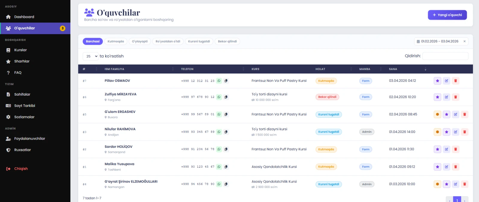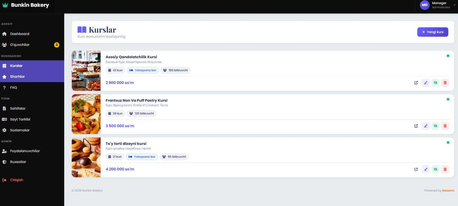Инфраструктура курсов и обучения: Специальный модуль для управления учебным процессом, включающий механизмы регистрации и отслеживания прогресса студентов.